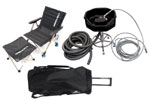 キャスター付きバッグ機材をまとめて収納。転がして運べるので移動の負担を減らせます。 |